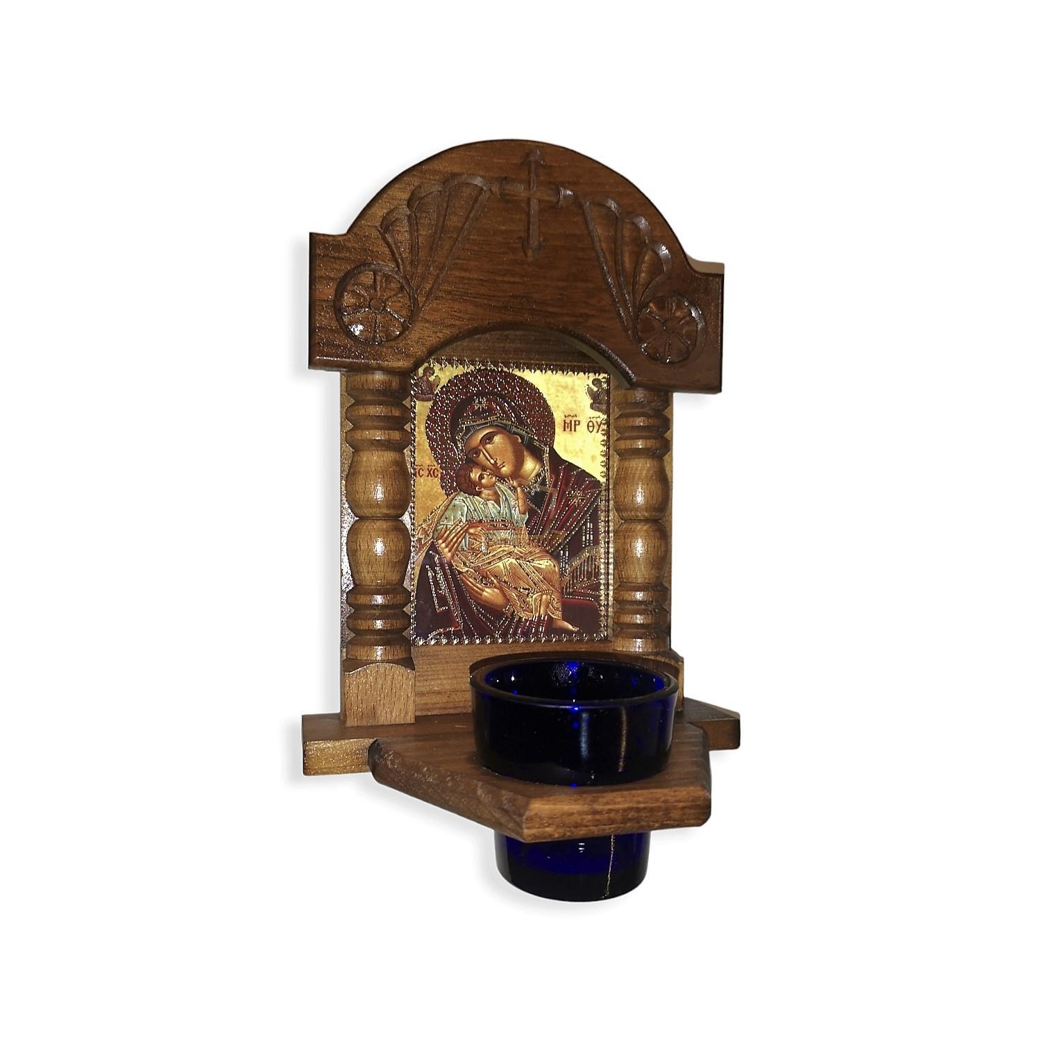 Ξύλινο σκαλιστό εικονοστάσι με καντηλόκουπα